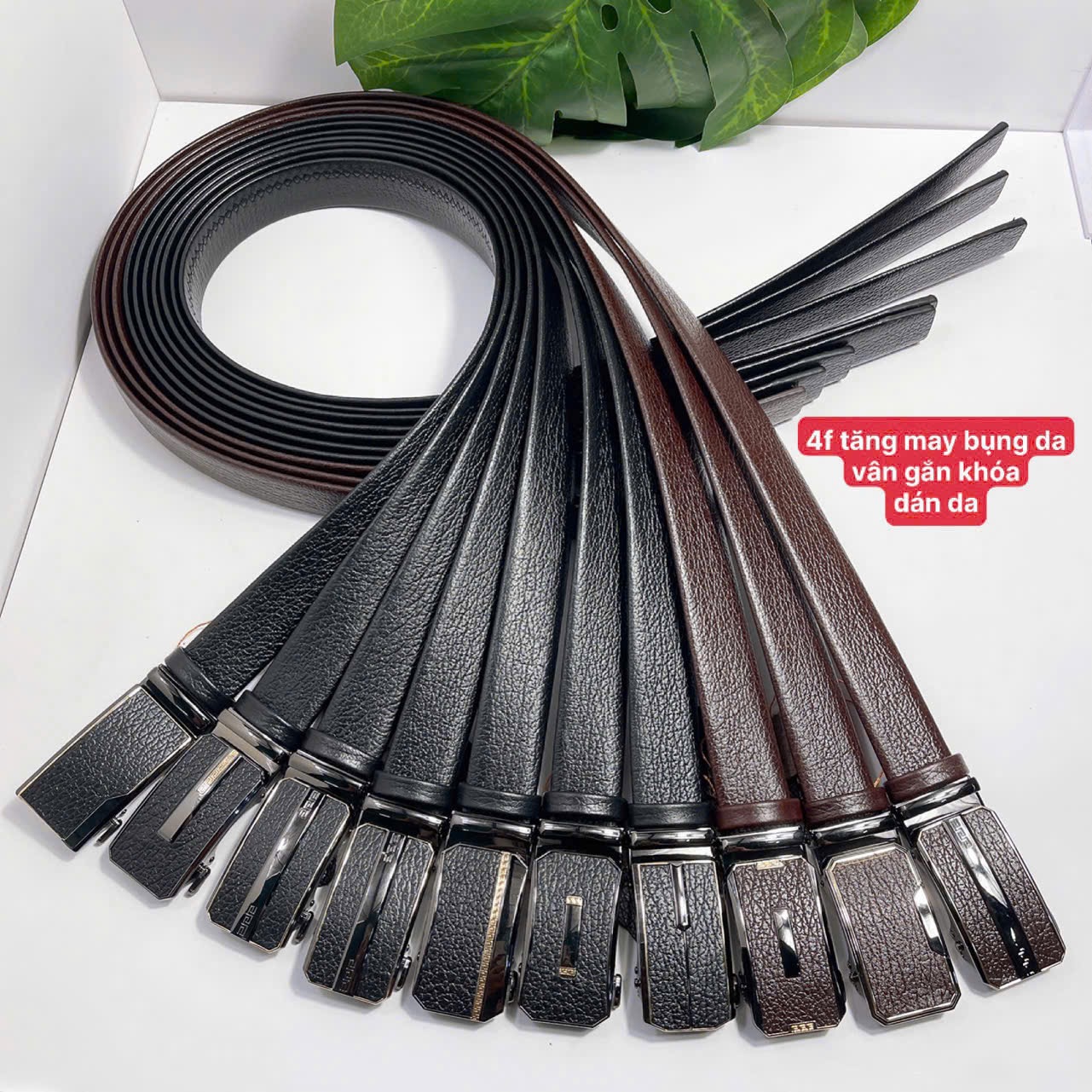 DÂY NỊT DA XỊN Chất liệu: Da Bò nguyên tấm, bảng dây 3phân6 Đầu khóa: Khóa tăng dán da