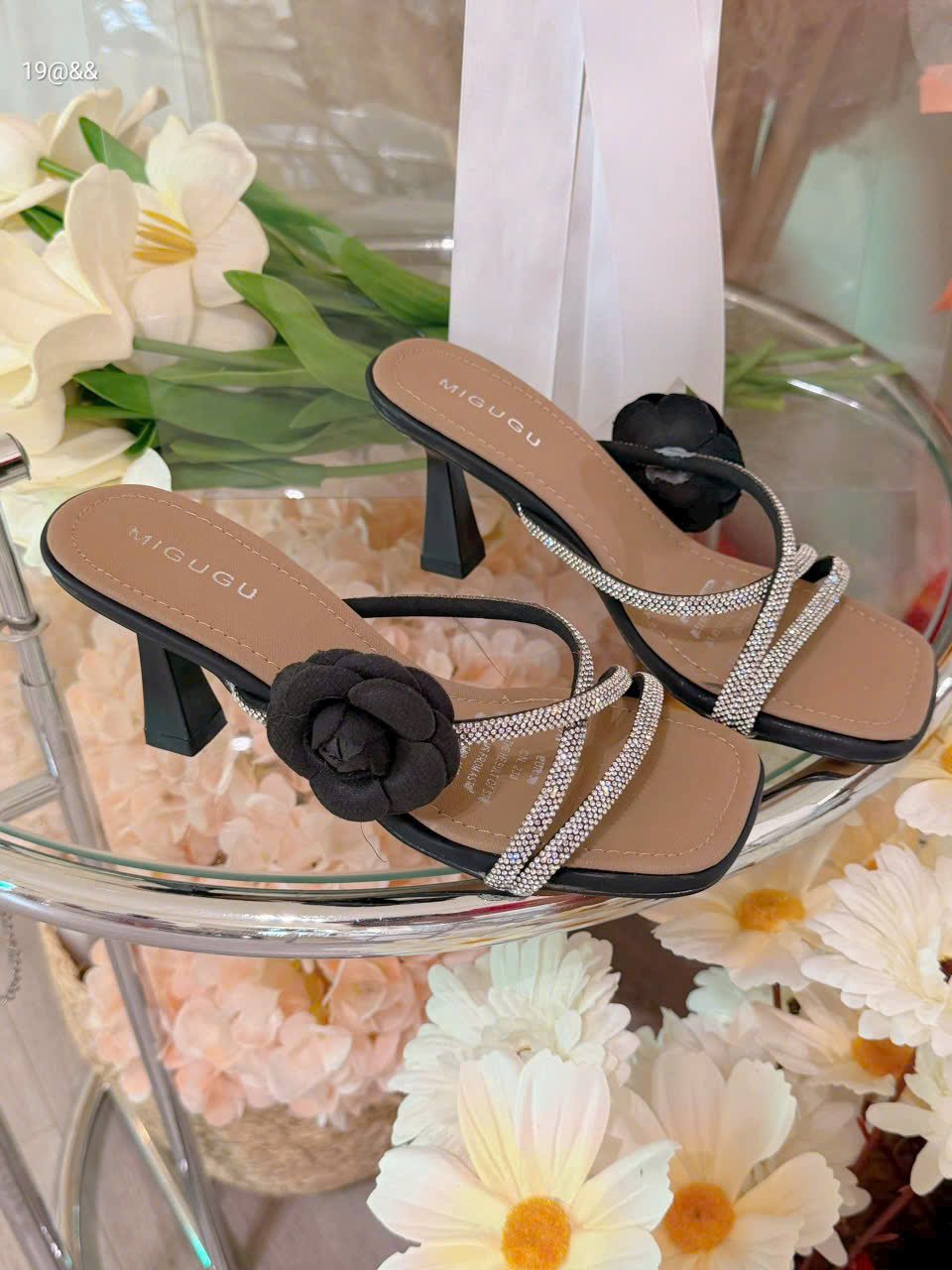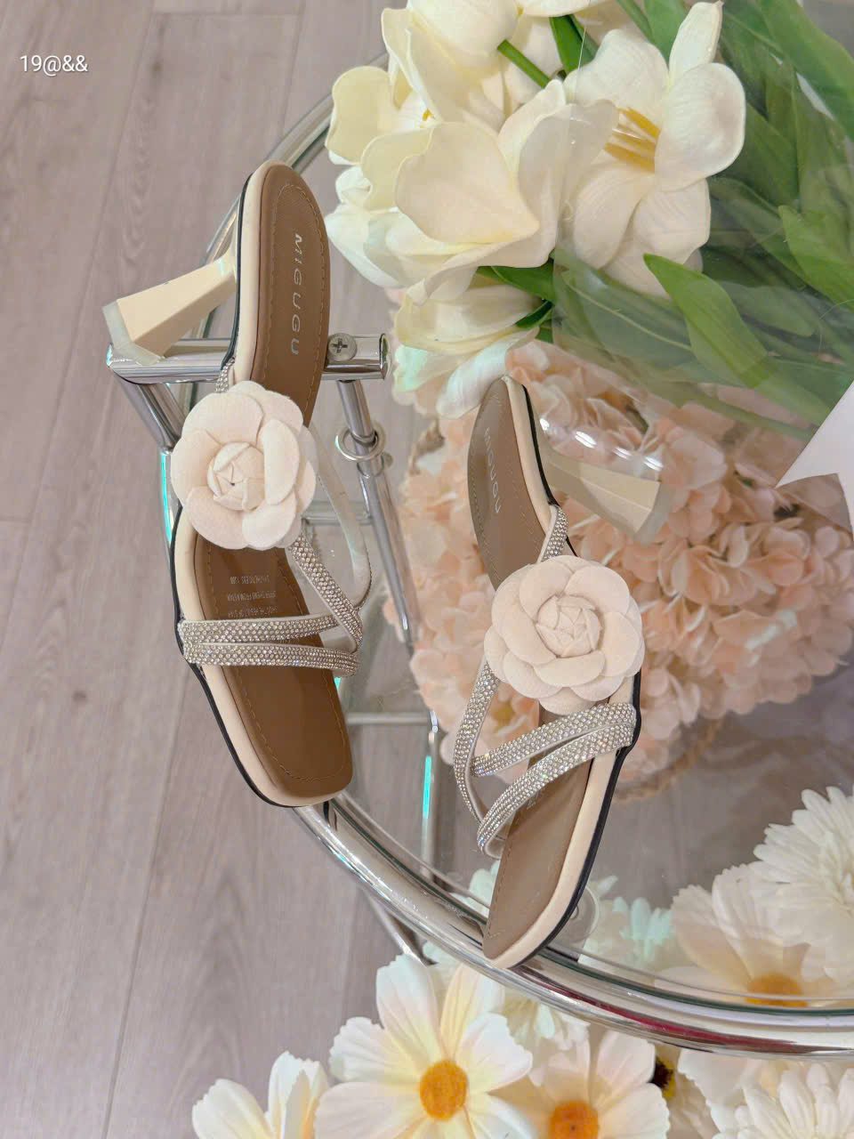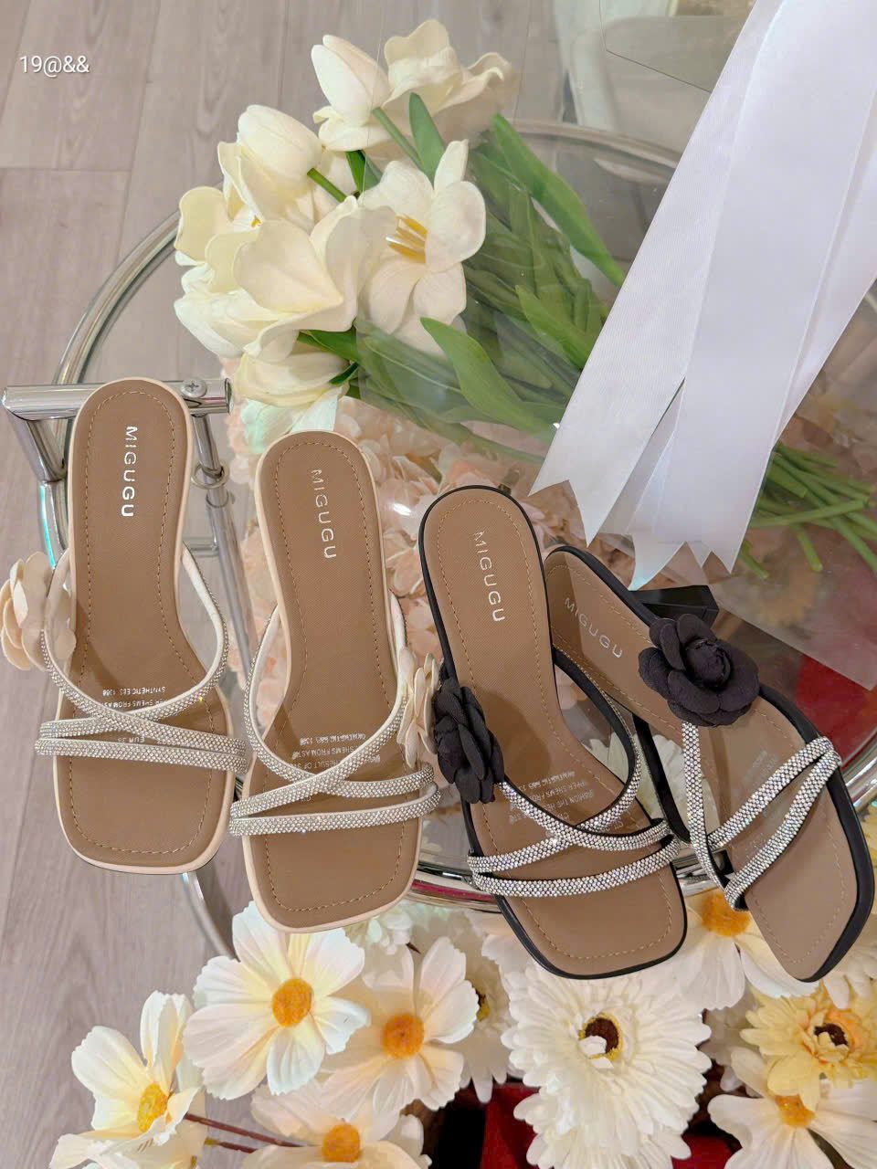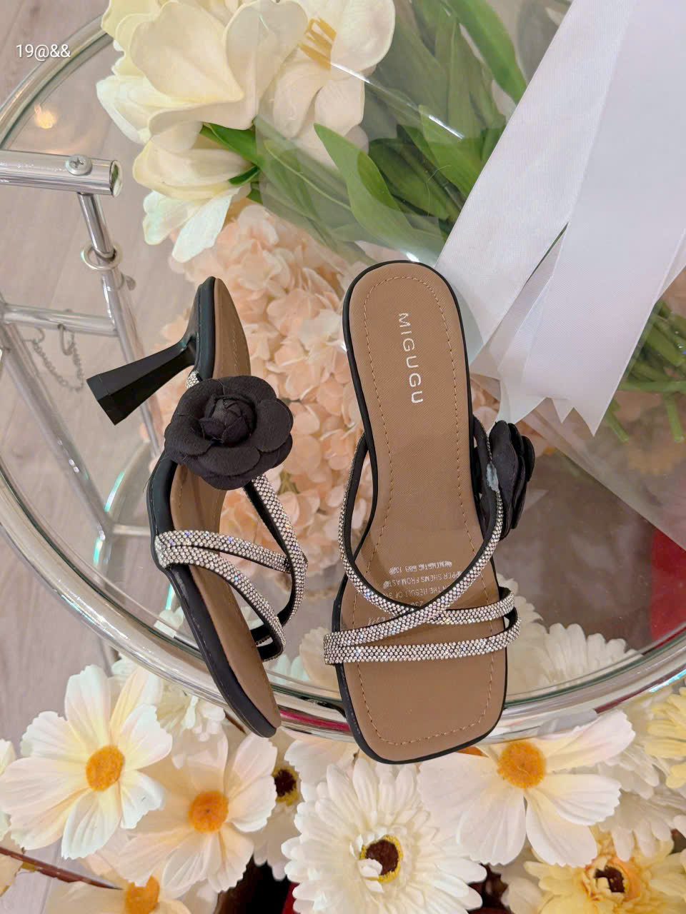 Dép dây đá hoa trà xinh gót 7 f